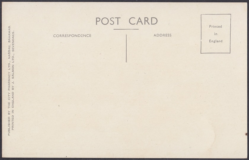 There are earlier types of this card (1930s-1940s) which are very similar. Earlier types show The City Pharmacy Ltd, Nassau, N.P. where Type 1 versions show  The City Pharmacy Ltd, Nassau, Bahamas.