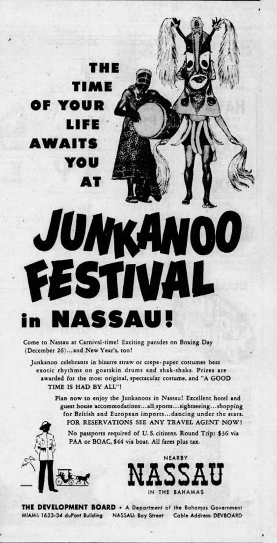 The origin of the word junkanoo is disputed. Theories include that it is named after a folk hero named John Canoe or that it is derived from the French gens inconnus (unknown people) as masks are worn by the revellers.