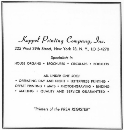 Koppel Printing Co and Koppel Photo Engraving Co were both located in 225W 39th Street, New York. The Koppel Printing Co was responsible for the printing of postcards.