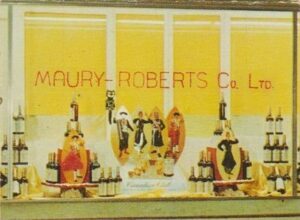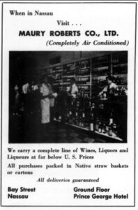 Maury Roberts Co., Ltd was originally owned by J Maury (and later by his sons Marcel and Peter Maury) and J W Roberts . It was located on the ground floor of the Prince George Hotel on Bay Street in Nassau. The Maury’s were part owners of the hotel with Roberts being a past owner.