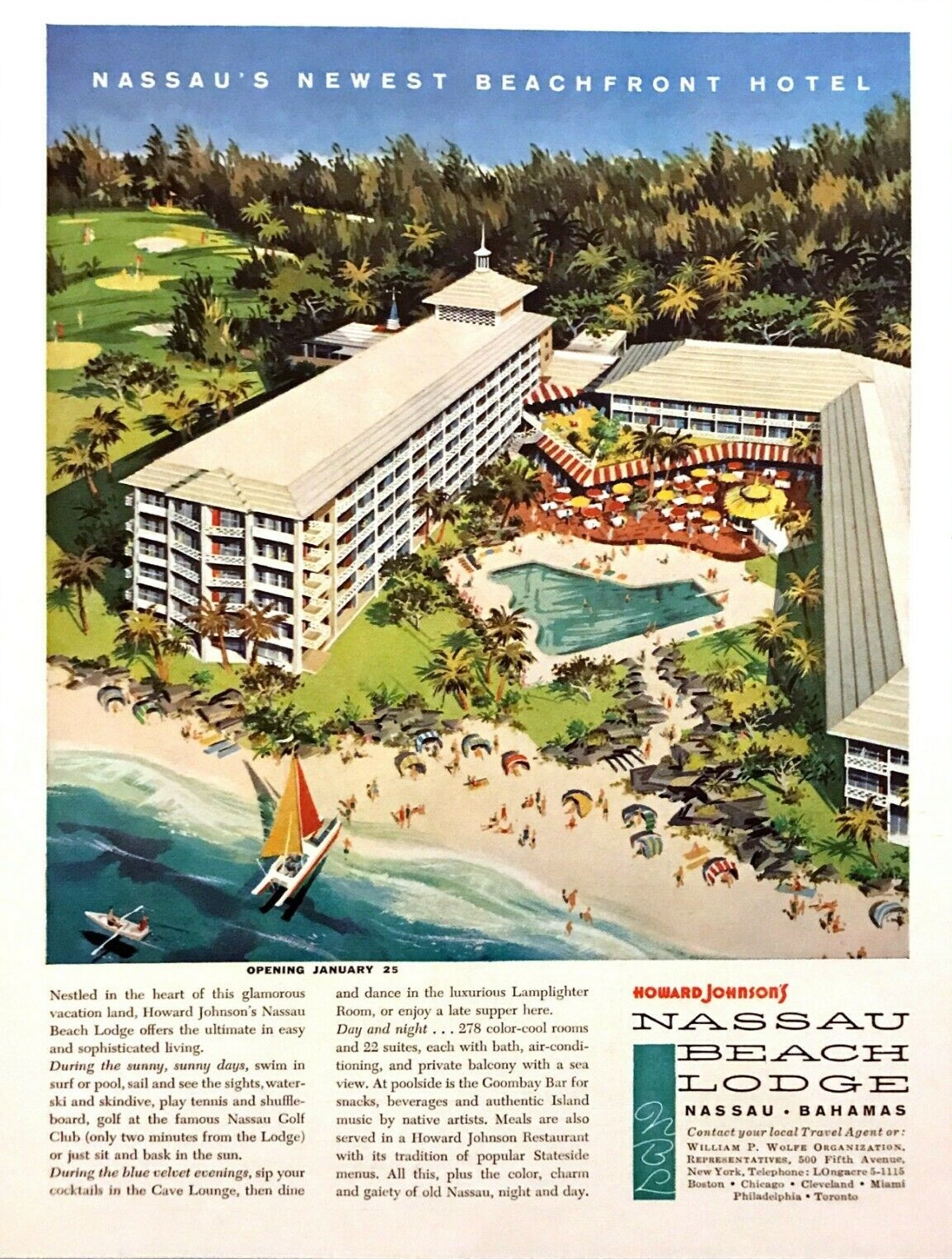 The Nassau was taken over by Howard Johnson who had owned a well known restaurant chain in the United States since 1929. In 1954 it began to run motels and The Nassau would be their first international hotel. The original name of the hotel was changed to be branded Howard Johnson’s Nassau Beach Lodge.