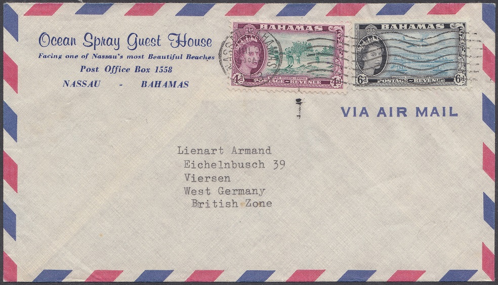 Ocean Spray Guest House was a pretty, pastel pink house owned by Si Moses, located directed across from the beach on West Bay Street. It was constructed in the late 1950s and appears to have opened around 1961. All rooms provided a private bath.