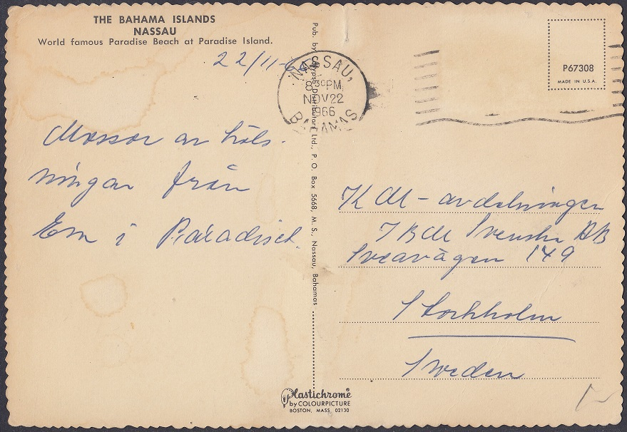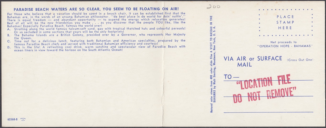 1963 Bahamas Talks – 8d Paradise Beach
