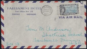 Parliament Hotel was located opposite the government buildings in Parliament Street, Nassau. Built in 1936, the hotel had 12 rooms, five apartments, and garden dining.