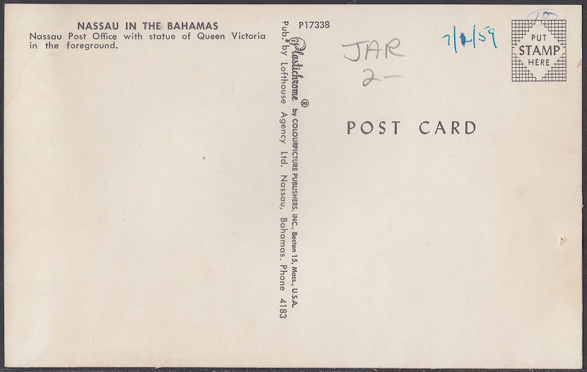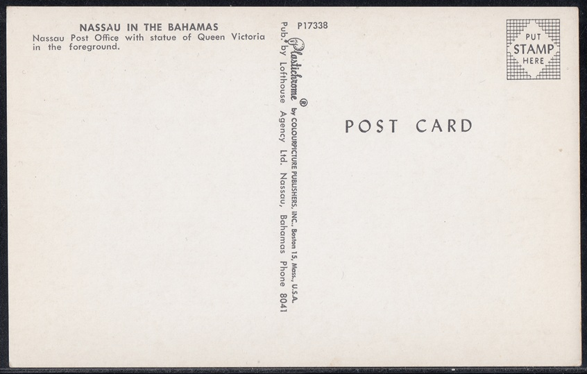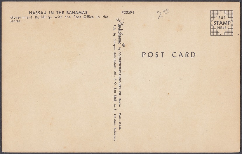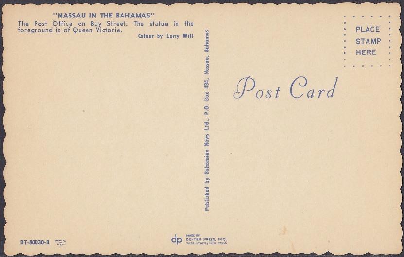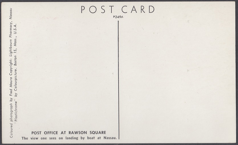 The ‘old’ Nassau Post Office was located off Rawson Square, in Public Square (Parliament Square) on Bay St. The centre building housed the post office on the ground floor.