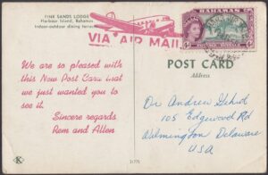 In 1949, Bert Malcolm bought a small two cottage accommodation on Harbour Island and named it Pink Sands Lodge. During the year, this was expanded to nineteen visitor’s homes with accommodation for a dozen guests. In 1951 Allen and Remelle Malcolm from Ashland, Kentucky, USA, purchased Pink Sands Lodge from Bert Malcolm and expanded the premises. In 1958, the Pink Sands Lounge opened.