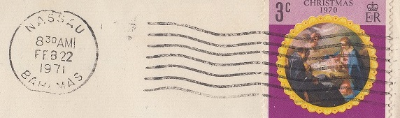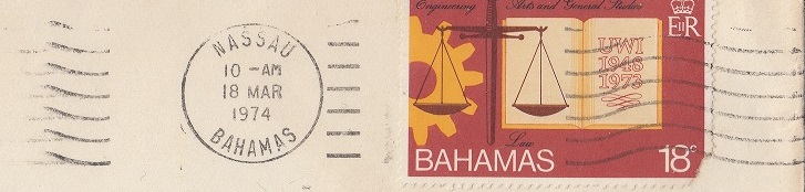 In 1965, there were four cancellation machines in Nassau General Post Office (G.P.O.) using four different cancellations.