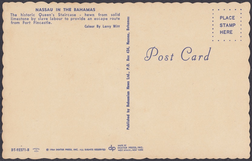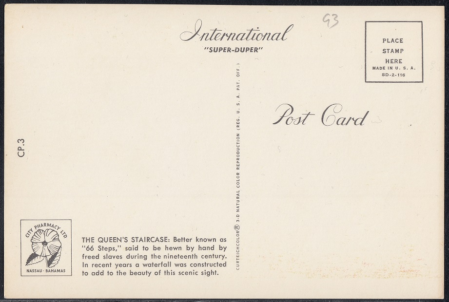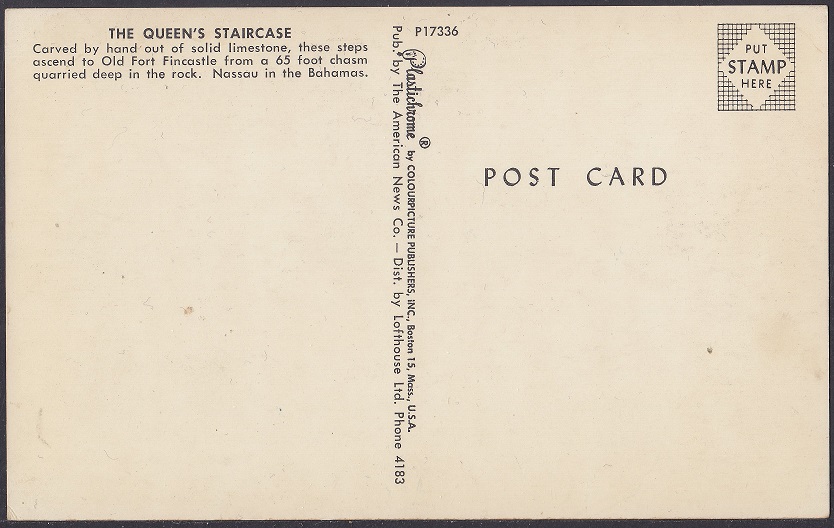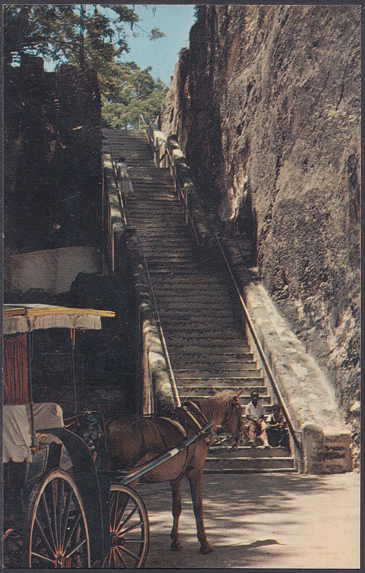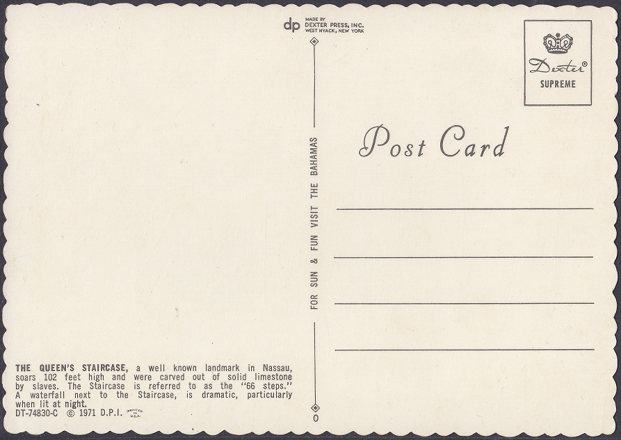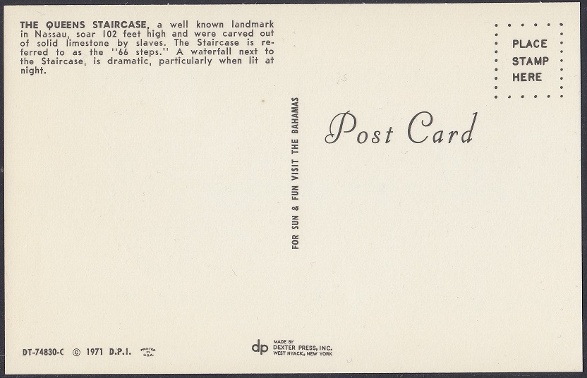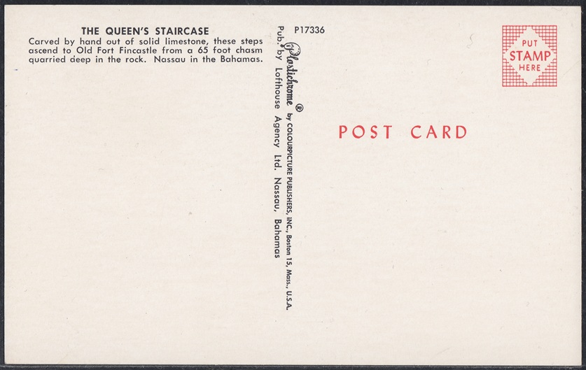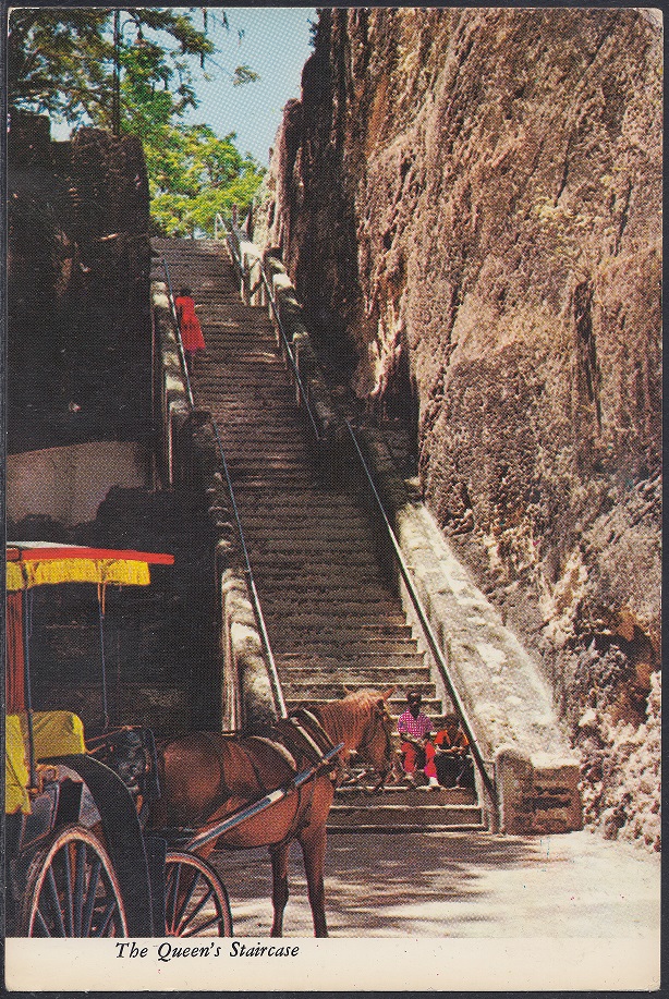 The Queen’s Staircase is a walkway of 66 steps in Nassau. It was carved out of solid limestone rock by 600 slaves between 1793 and 1794 to create an escape route from Fort Fincastle. In the 19th century the steps were named in honour of Queen Victoria who ended slavery in the British Empire.