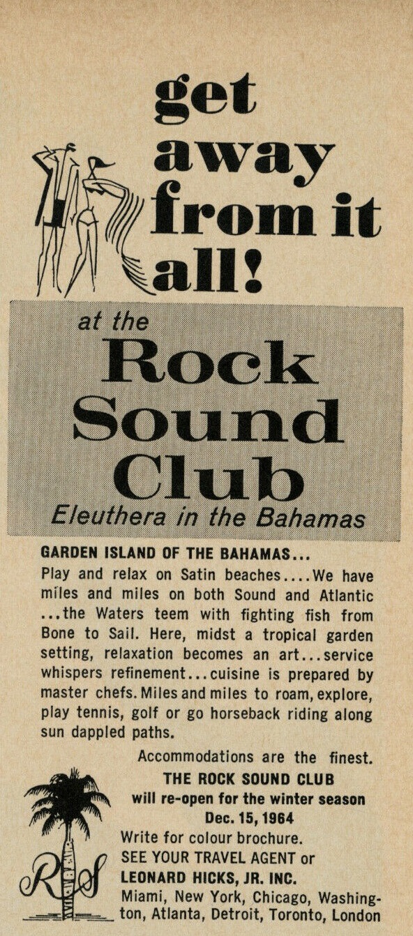 In 1965 the Rock Sound Club opened brand new beach cottages and was renamed Rock Sound Club and Beach Cottages. The Rock Sound Club closed in 1973 but the cottages continue to exist.