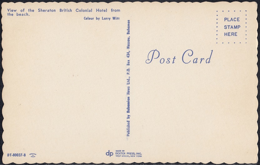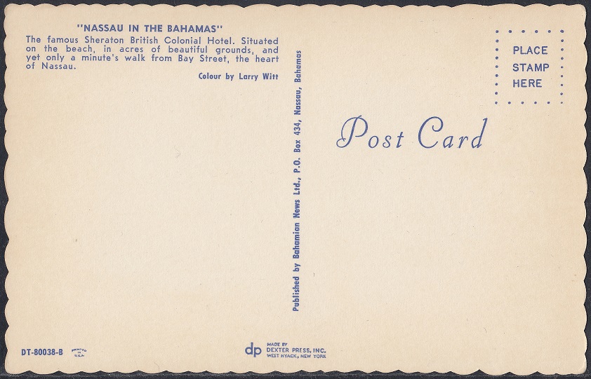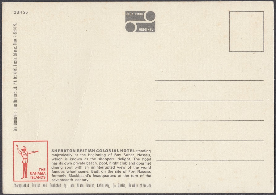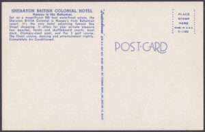 In November 1962, Gill became a franchisee with the Sheraton chain and the British Colonial Hotel was rebranded as Sheraton British Colonial.