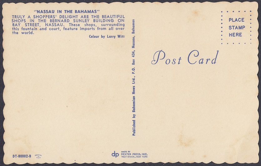 The Sunley Arcade was in the western part of the Bernard Sunley Building. It was located in downtown Nassau, off Rawson Square. The arcade provided a number of shops over-looking a fountain and court, selling imports from around the world.