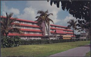 The hotel was decorated in a Far East style with an indoor/outdoor oriental garden lobby and pool. Facilities included the Driftwood Restaurant and Supper Club under the direction of Billy of Billy’s Restaurant in Washington, D.C.