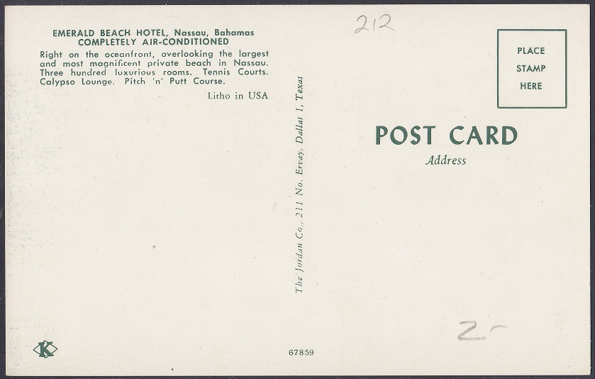 | 67859 | Emerald Beach Hotel, Nassau, Bahamas | 07/02/1963 |
