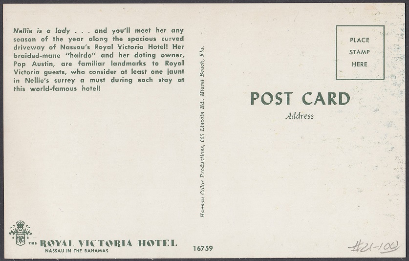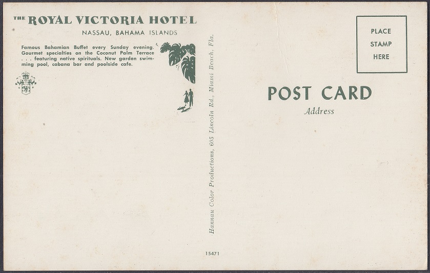 The Royal Victoria Hotel was built in 1861 by the Government of Bahamas at a cost of £20,000. The hotel was built to cater for those seeking to escape from the American Civil War as well as Europeans seeking their fortunes.