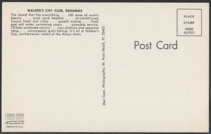 Walker’s Cay Club was located on Walker Cay, Abaco. The club, located on 100 acres of land, primarily provided accommodation for fishing sports.