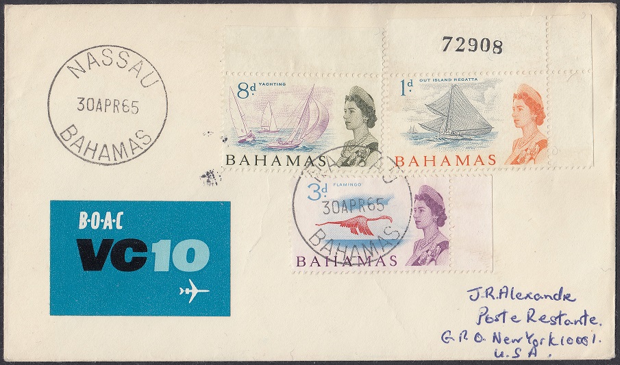 92 covers were postmarked at Nassau for the Nassau-New York first flight on 30 April 1965.