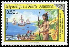 The island was originally inhabited by the indigenous Taíno people, who migrated from South America. The first Europeans arrived on 5 December 1492 during the first voyage of Christopher Columbus. The island was claimed by Spain and named La Española. Competing claims and settlements by the French led to the western portion of the island being ceded to France in 1697, which was subsequently named Saint-Domingue.