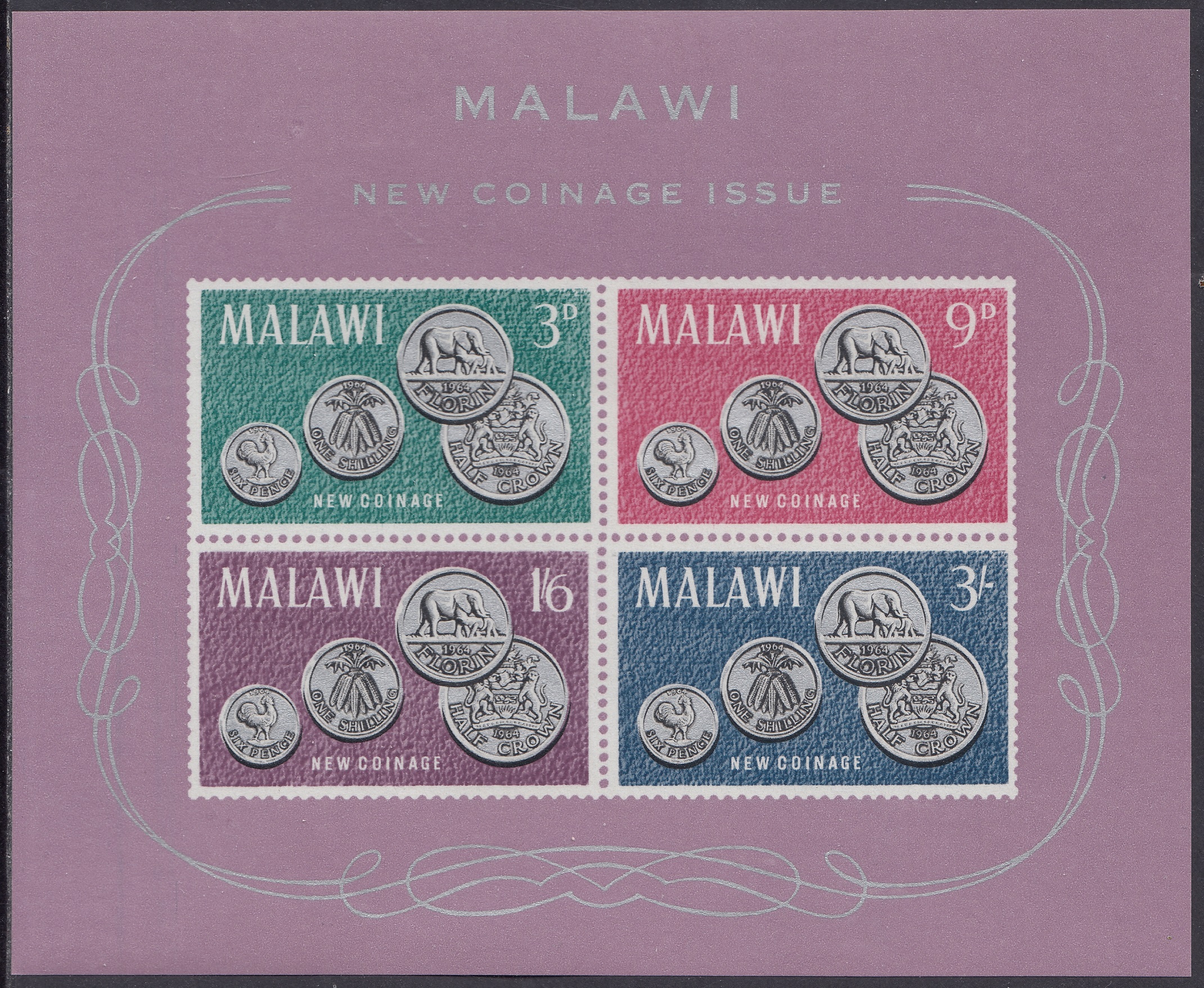 Malawi Philately: 1965 New Coinage – 4/6d Miniature Sheet
