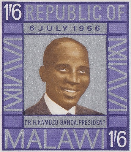 Malawi Malawi Philately: 1966 Republic Day – 1/6d Dr H Kamuzu Banda, President thedigitalphilatelist 06/07/1966 Details Designer: Michael Goaman Printer: Harrison & Sons Ltd, London Process: Photogravure Paper: Watermark: Cockerels Perf: 14 x 14.5 (comb) Cylinders: 1A (Sepia) 1A (Brown) 1A (Silver) 1A (Violet) Sheet: 6 x 10 (60) Quantity: Share this: Share on Facebook (Opens in new window) Facebook Share on X (Opens in new window) X Like this:Like Loading... Related