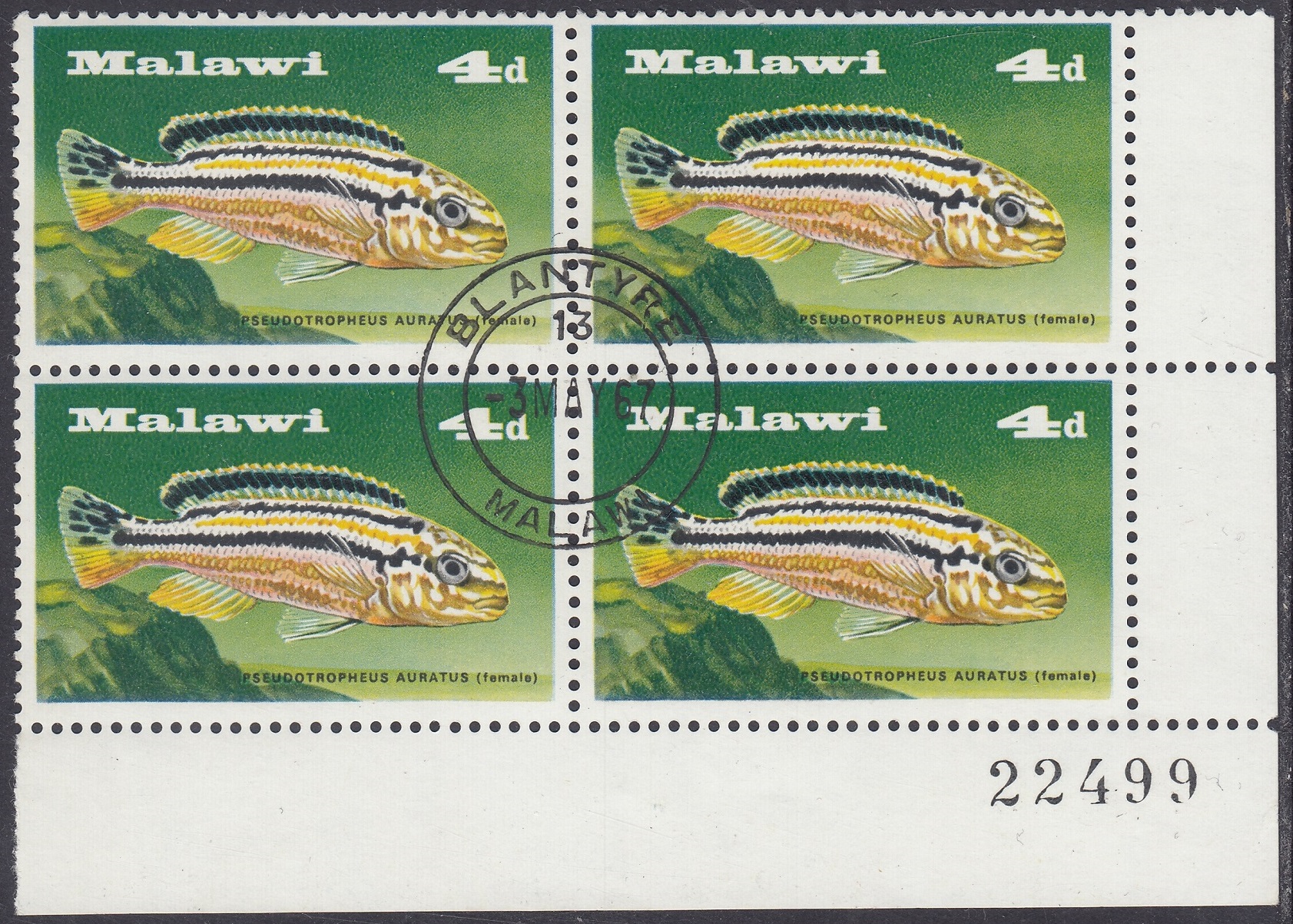 Malawi Philately: 1967 Tropical Fish of Lake Malawi – 4d Pseudotropheus auratas (female)