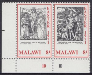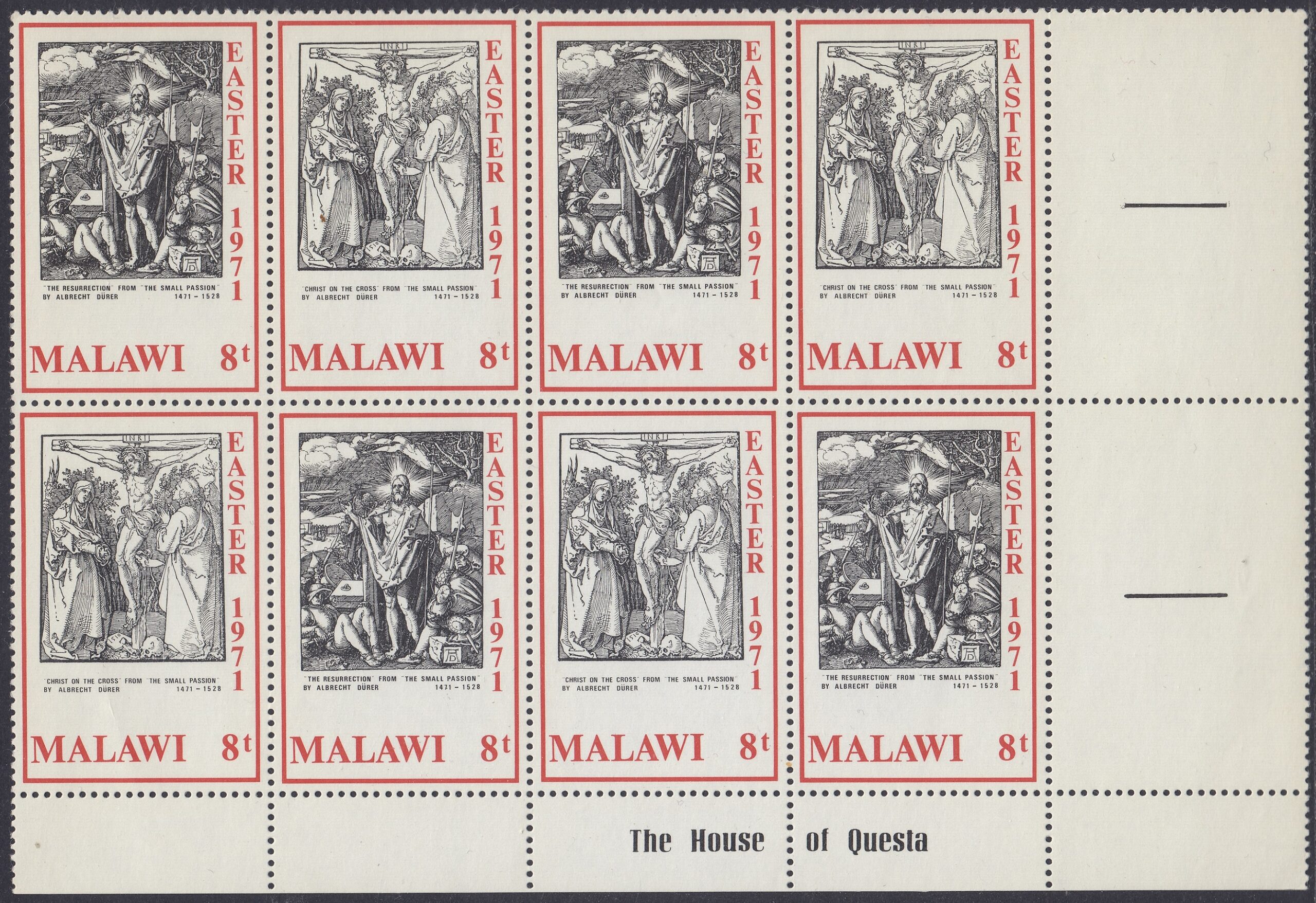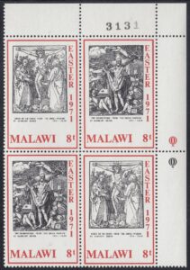 - Sheet:Printed in four panes and guilotined through horizontal gutter into two panes for distribution.