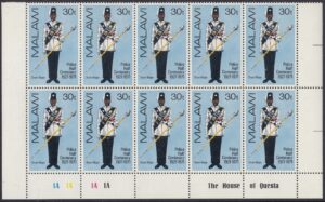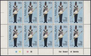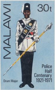 The stamp depicts a drum major. A drum major (or field commander) is the leader of a marching band, drum and bugle corps, or pipe band, usually positioned at the head of the band or corps. The drum major is often dressed in more ornate clothing than the rest of the band or corps and is responsible for providing commands to the ensemble, leading them while marching, and directing them what to play, when to play, and what time to keep.