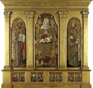 Vittorio (or Vittore) Crivelli (1404-c.1502) was an Italian painter, in Venice. His works are similar in style to his brother’s, Carlo Crivelli, but less accomplished.