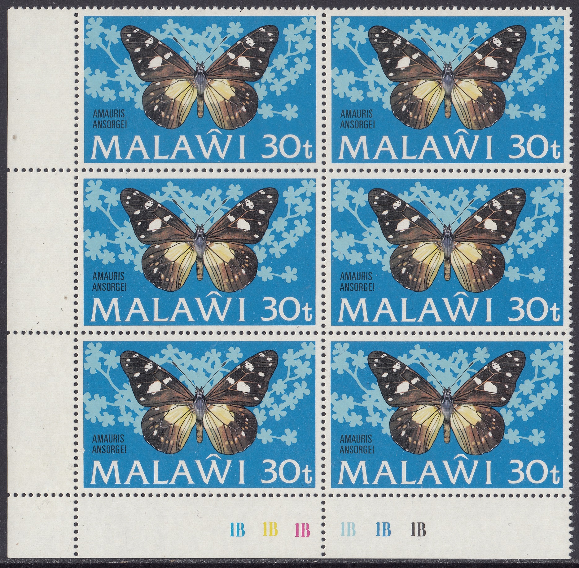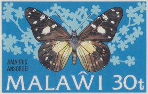 The original issue of the 30t had the butterfly incorrectly labelled as Euphaedra Zaddachi. It was reissued with the correct name Amauris ansorgei.
