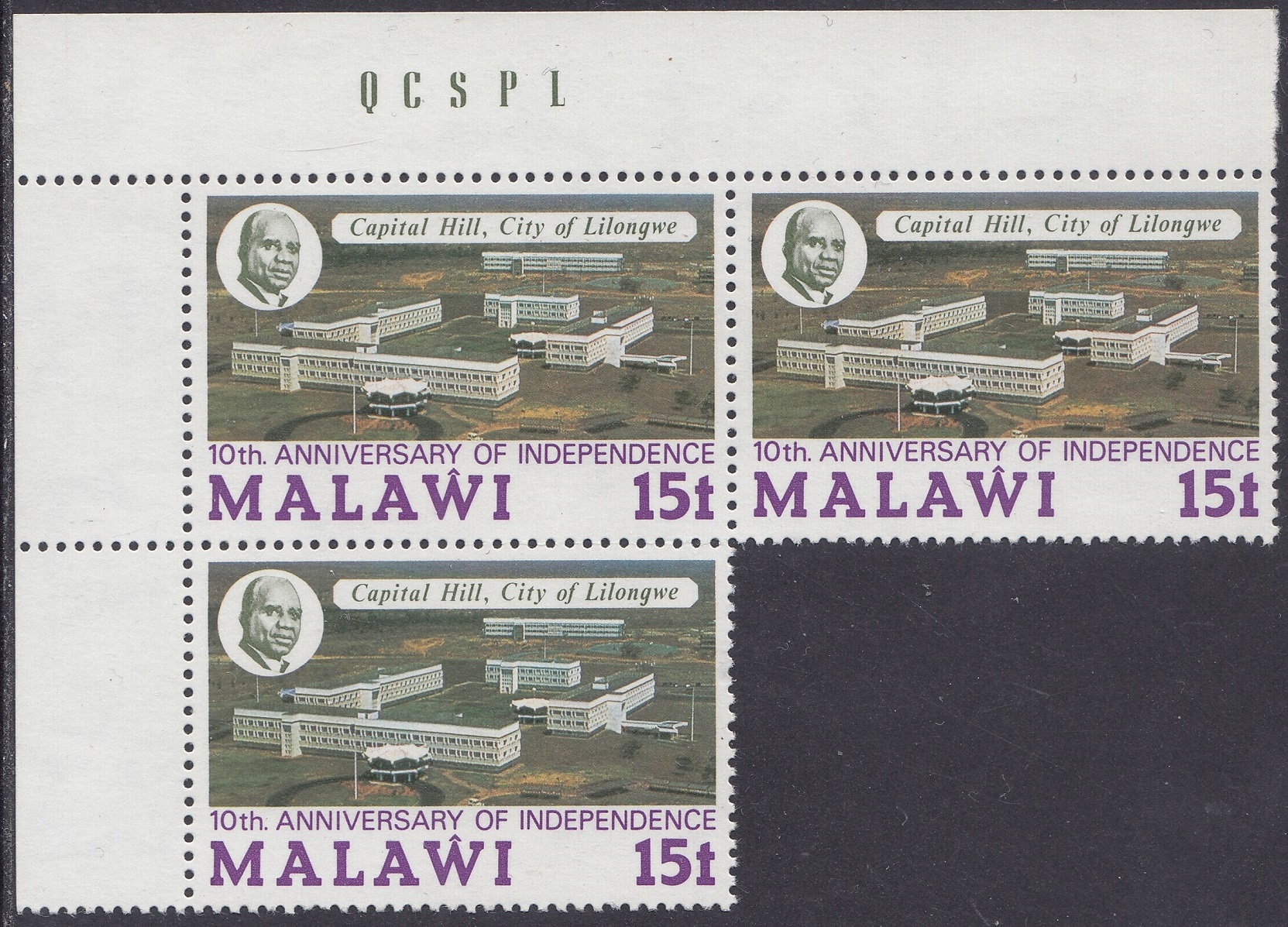 Malawi Malawi Philately: 1974 10th Anniversary of Independence – 15t Capital Hill, City of Lilongwe thedigitalphilatelist 03/07/1974 Details Designer: PAD Studio Printer: Questa Colour Security Printers Ltd (House of Questa) Process: Lithography Paper: Watermark: Cockerels (sideways) Perf: 14 (comb) Cylinders: Sheet: Quantity: Share this: Share on Facebook (Opens in new window) Facebook Share on X (Opens in new window) X Like this:Like Loading... Related