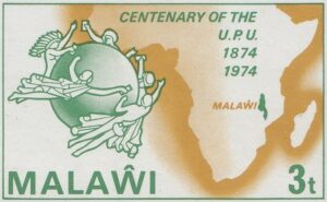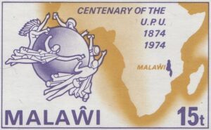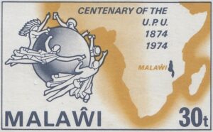 This series features the U.P.U. logo set against a map of Africa showing Malawi.