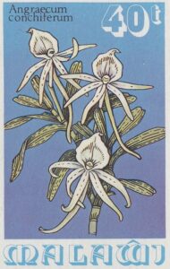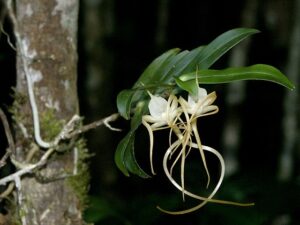 Angraecum conchiferum is a species of orchid found in Knysna and Tsitsikamma forests. The name “conchiferum” is derived from Latin meaning “shell-bearing” which refers to the lip.