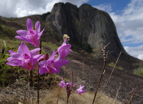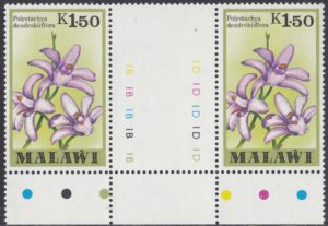 Polystachya dendrobiiflora is a species with relatively large flowers on a straw-like stem, normally flowering before the leaves appear. Flowers showy, opening wide, shell-pink to mauve-pink, sometimes almost white, sometimes with red or lilac spots on the lip. This is an unusual species within the genus, in that it often grows as a terrestrial in shallow sandy soil.