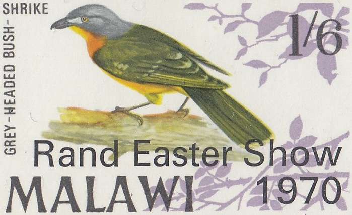 Malawi Philately: Grey-Headed Bushshrike (Malaconotus blanchoti)