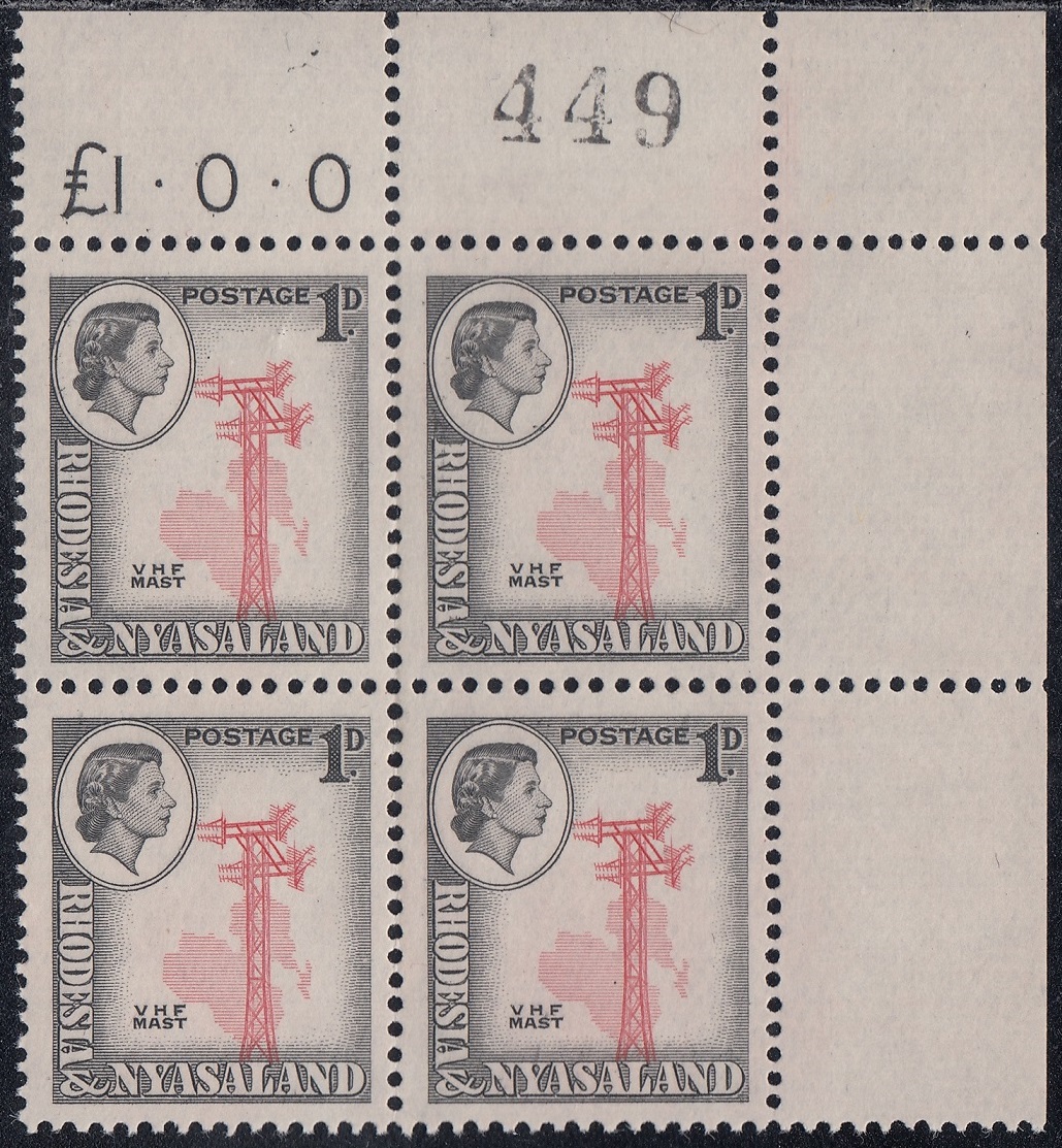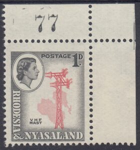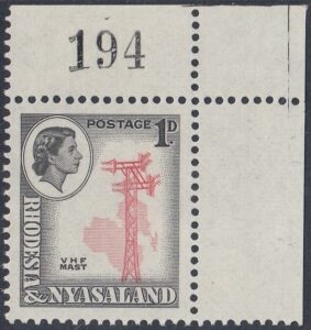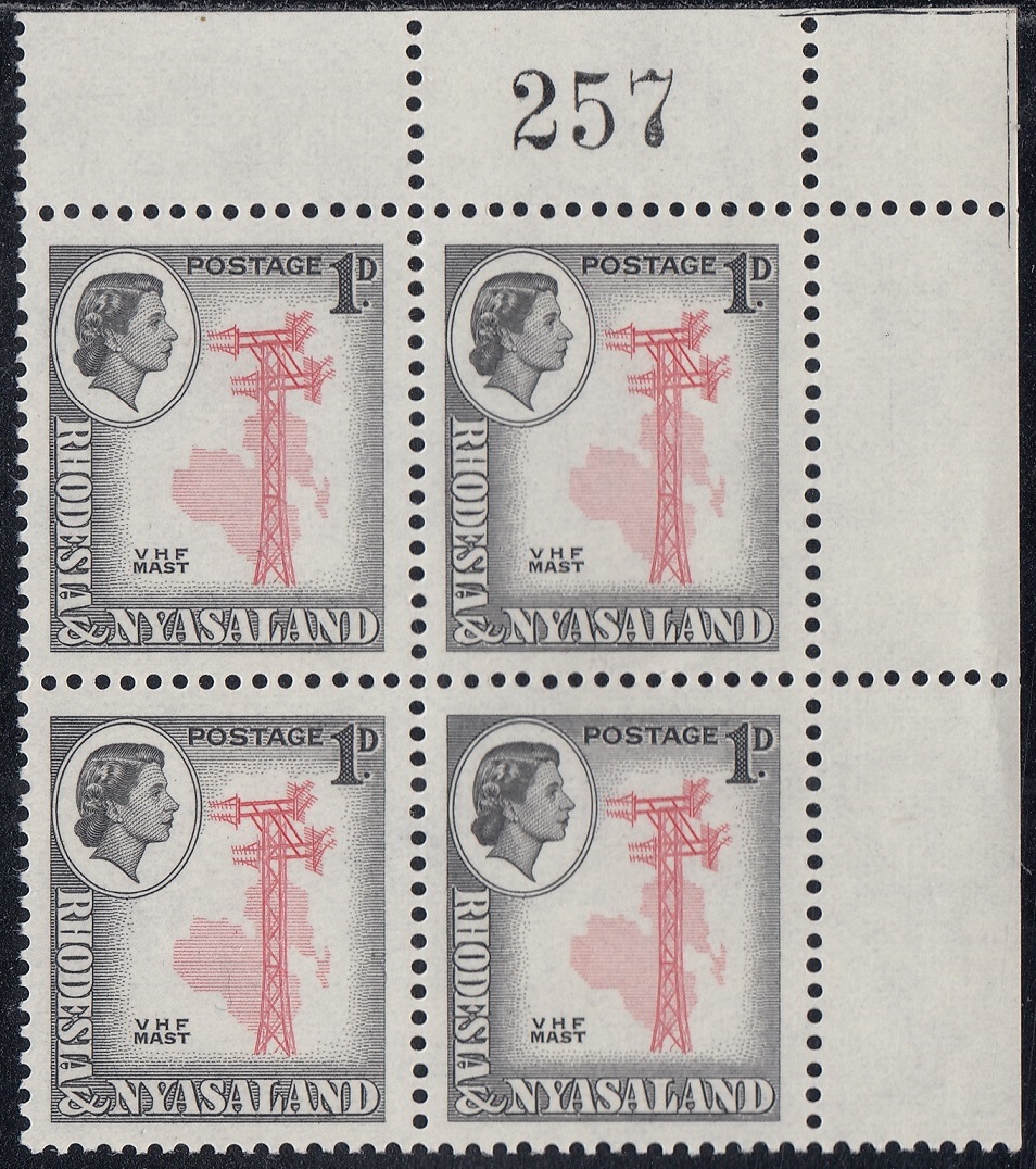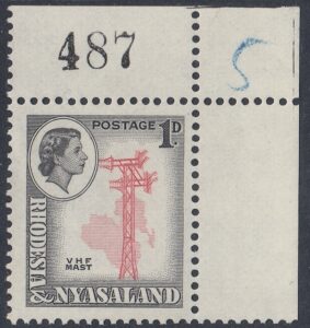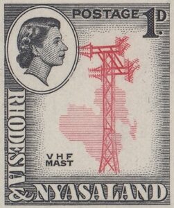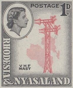 The 1d. stamps incorporated a V.H.F. mast, superimposed on an outline map of the Federation.