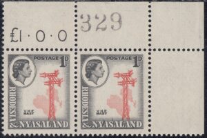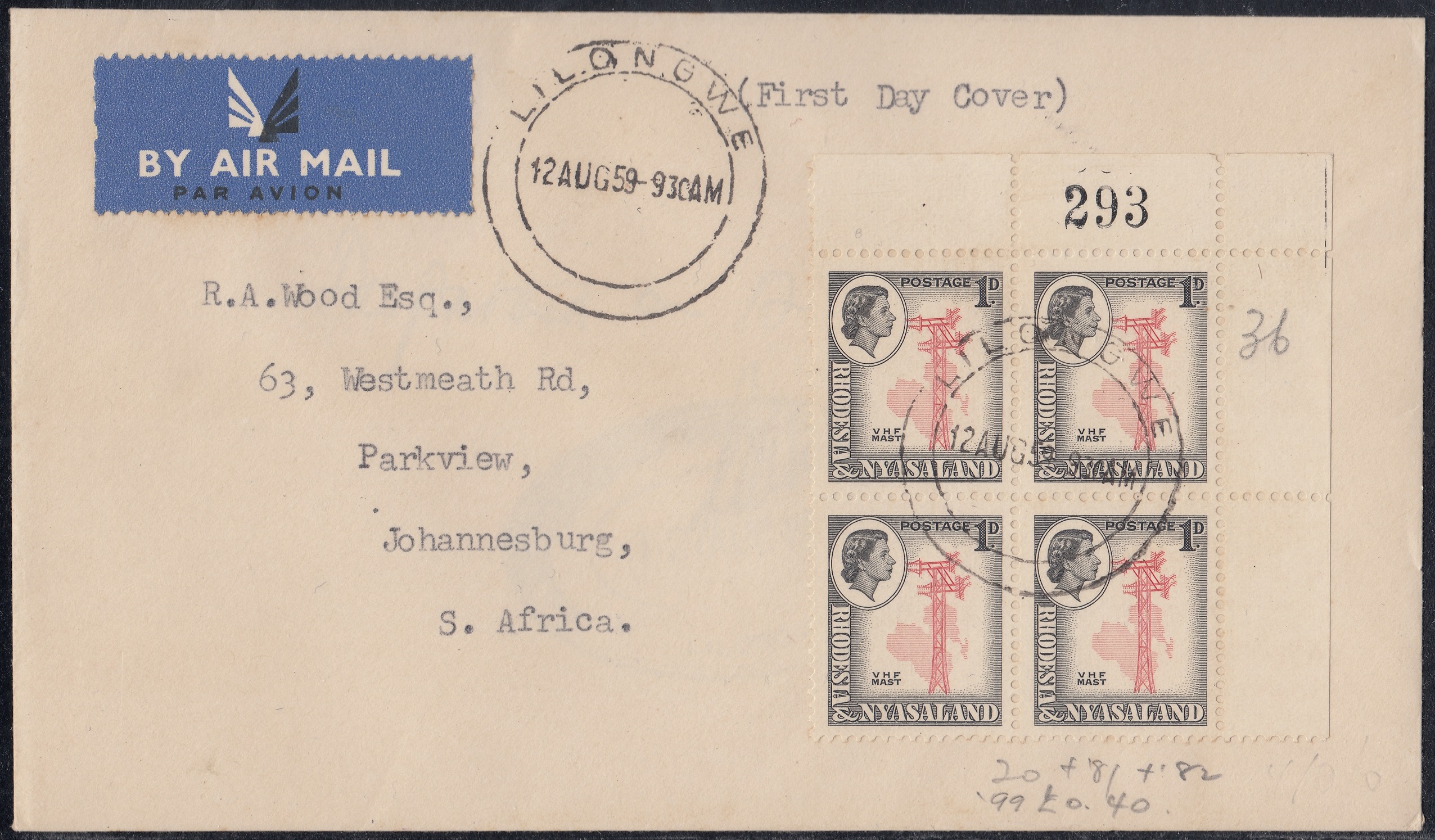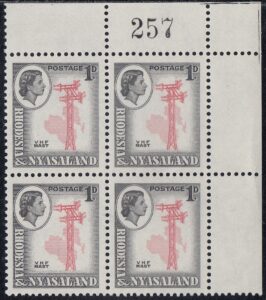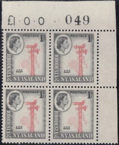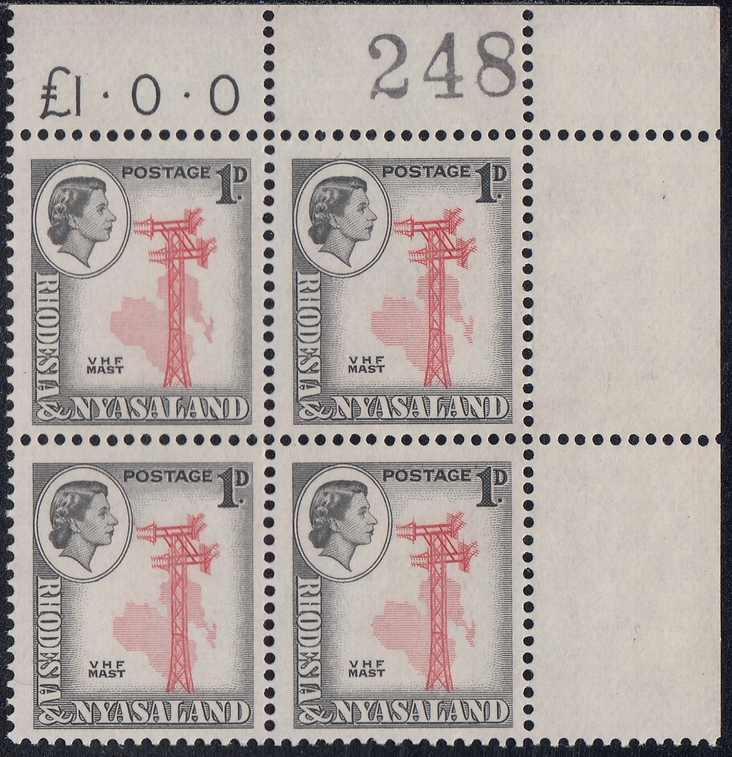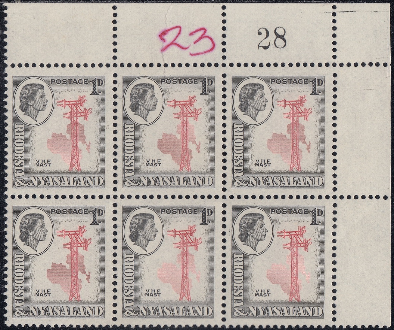 The 1d. stamps incorporated a V.H.F. mast, superimposed on an outline map of the Federation.