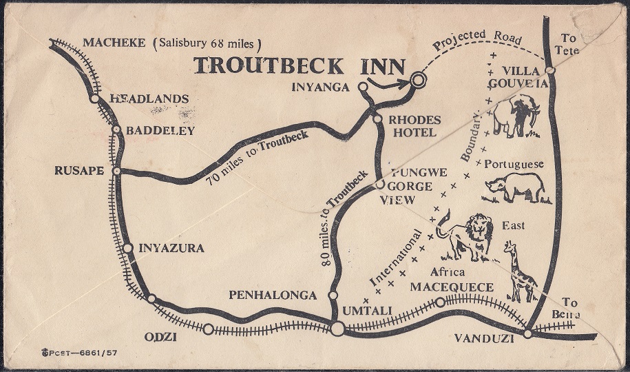 Troutbeck Inn was located near Inyanga (Inyanga Downs). It was built in 1947 by Major Alfred Herbert MacIlwaine. It was built to represent a fine country hotel and other establishments in the Scottish homelands.