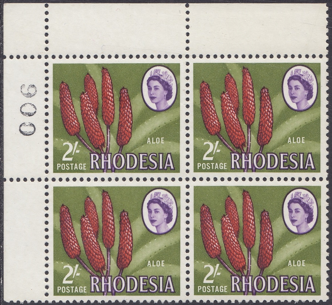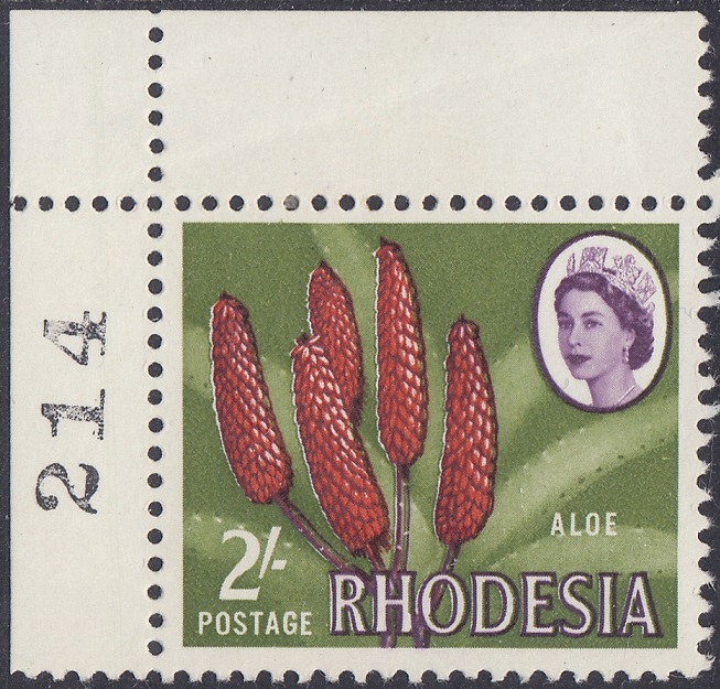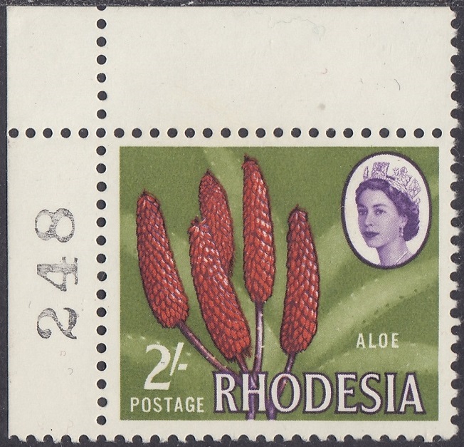 Rhodesia Rhodesia Philately: 1966 Definitive Issue – 2s Aloe thedigitalphilatelist 09/02/1966 Details Subject: Aloe Designer: Victor Whiteley Printer: Harrisons and Sons Ltd, London Process: Photogravure Paper: White paper with clear gum Watermark: None Perf: 13.5 x 13 (comb) Cylinders: 1A 1A 1A Sheet: R10 x 6 (60 stamps) Quantity: 300,000 Sheet Numbers References The Encyclopaedia of Rhodesian & Zimbabwe Stamps 1964-2022 Share this: Share on Facebook (Opens in new window) Facebook Share on X (Opens in new window) X Like this:Like Loading... Related