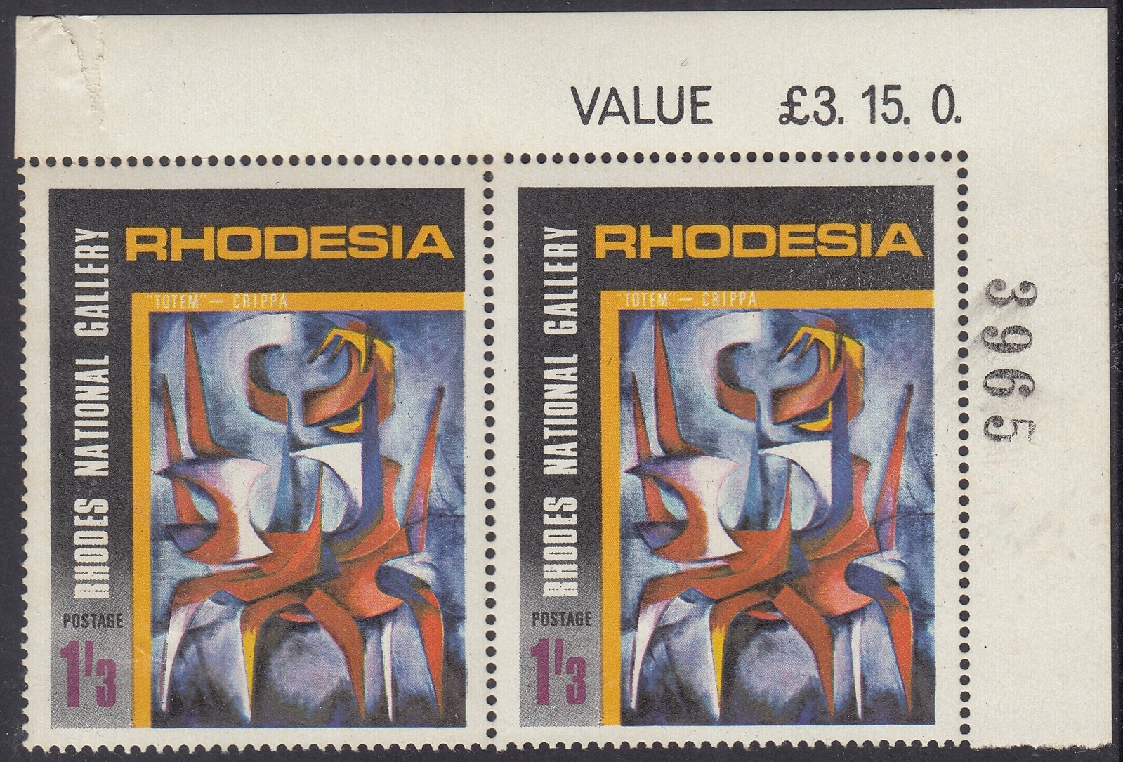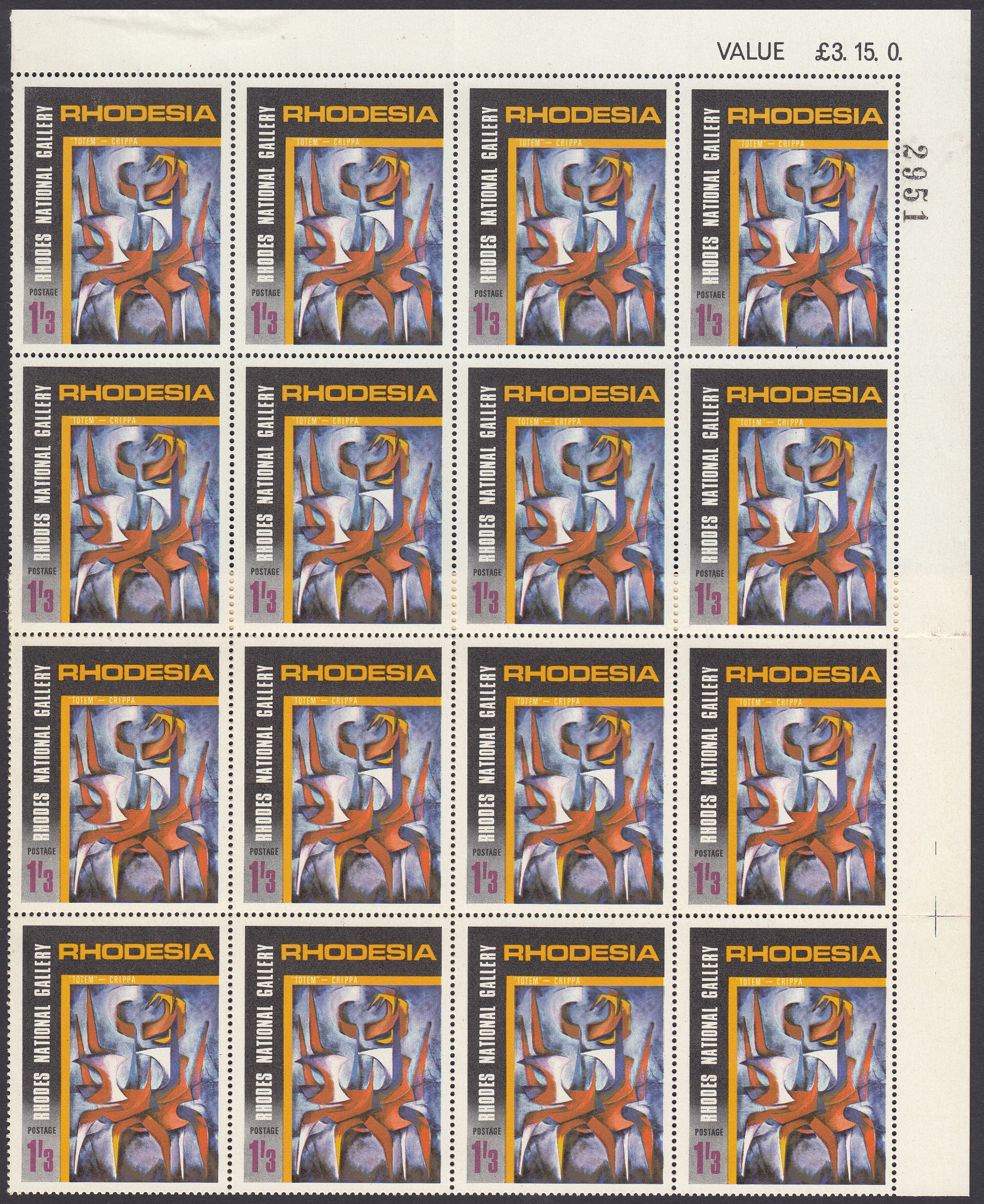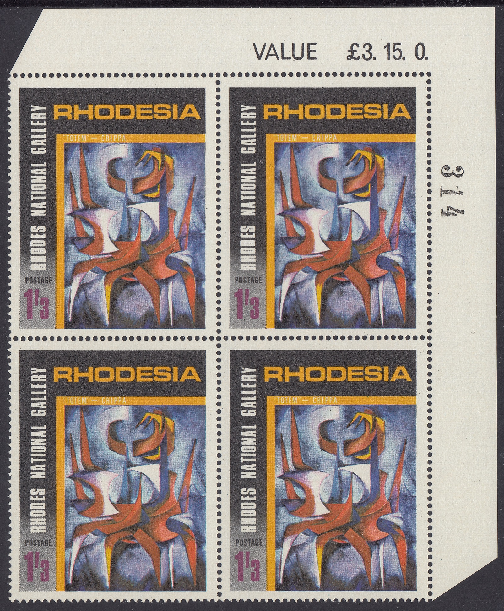 Rhodesia Philately: 1967 Rhodes National Gallery Salisbury (1957-1967) – 1/3d “Totem” – Crippa