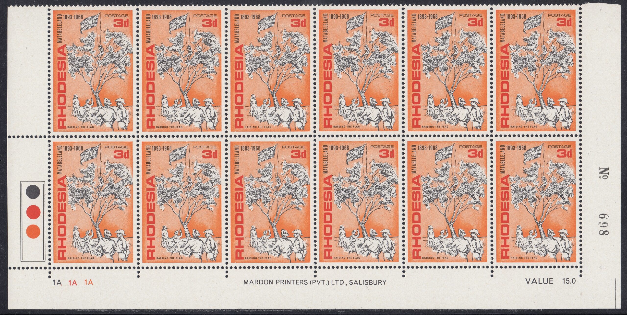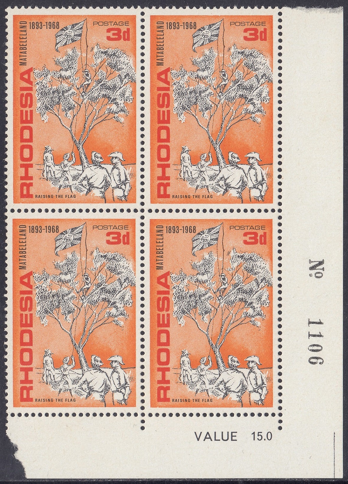 Rhodesia Philately: 1968 Matabeleland (1893-1968) – 3d Raising the Flag