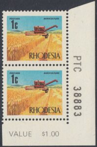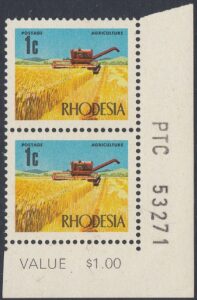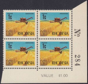 Agriculture has consistently been a major contributor to the economy and the subject of this stamp, “Wheat Harvesting”, fittingly pays tribute to the dramatic break-through in wheat production in the last three years. From almost nothing to self-sufficiency in less than a decade is the ambitious programme now enthusiastically and energetically under way.
