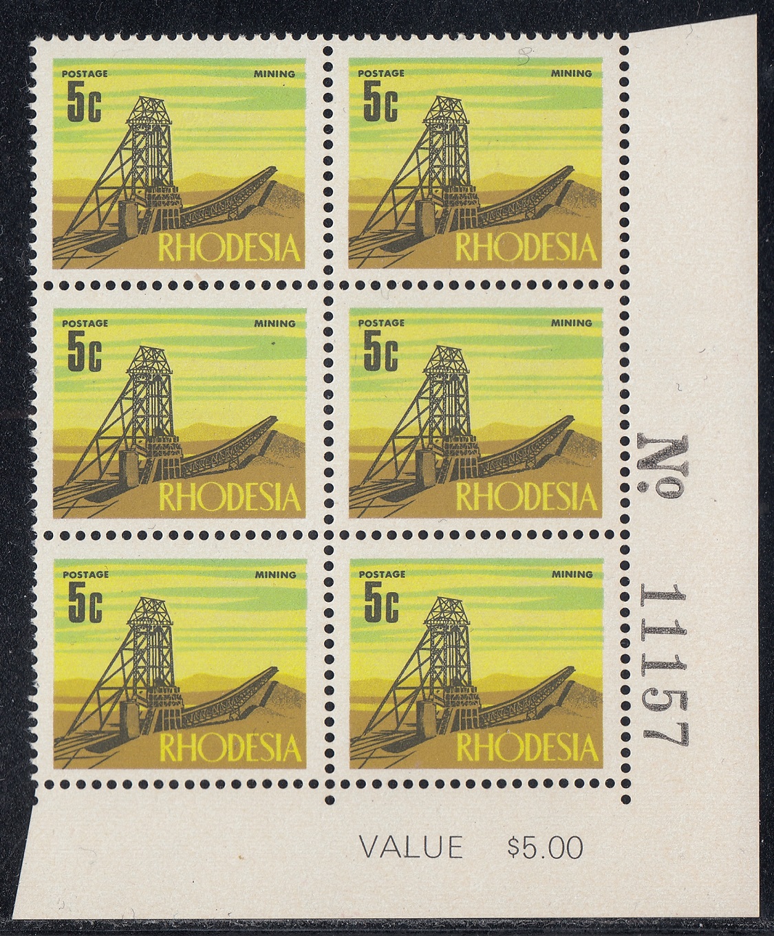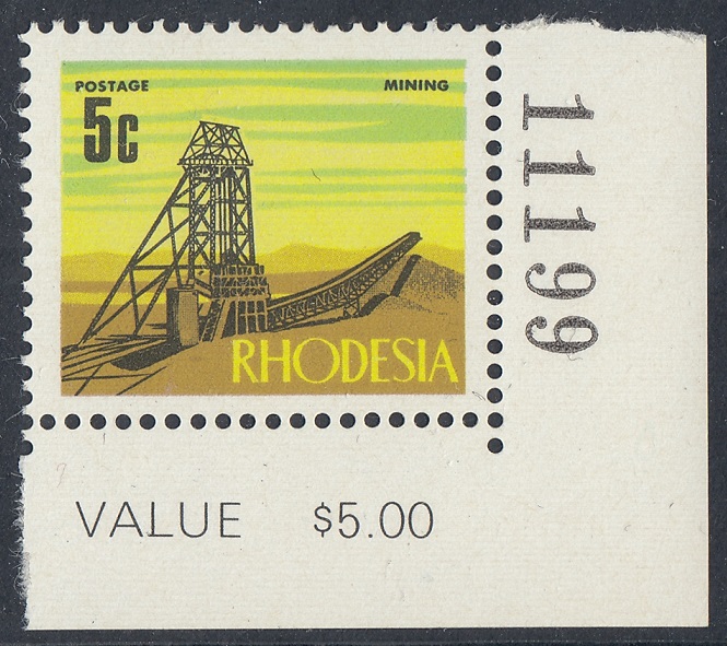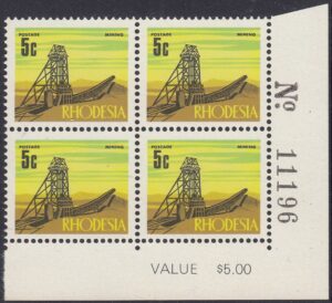 Mining—the country’s first industry and now a major economic undertaking—is the subject of this stamp, which depicts simply a mine headgear. Rich in numerous minerals, Rhodesia’s mining industry is now experiencing an exciting resurgence with new discoveries of deposits ranging from gemstones to nickel.