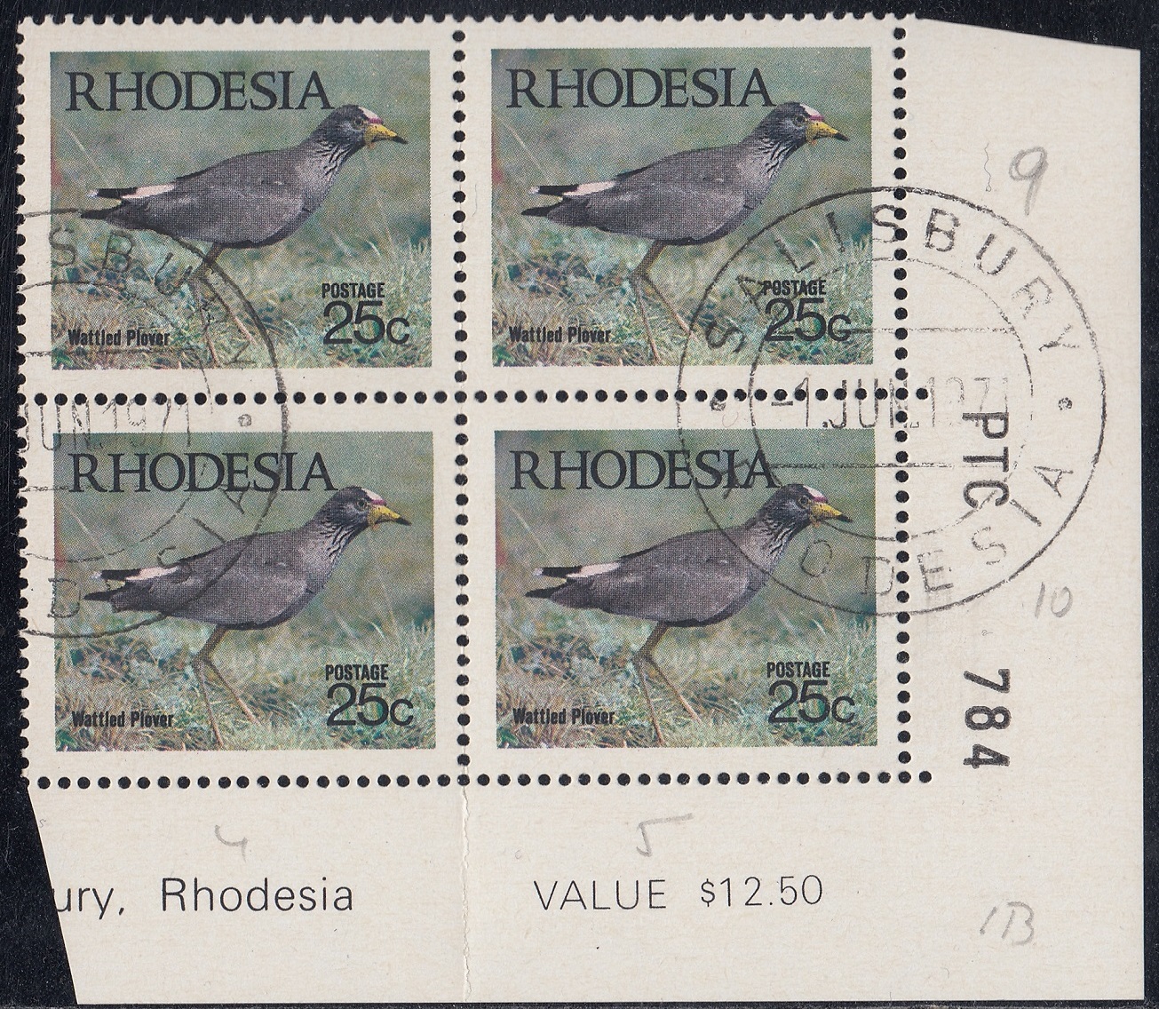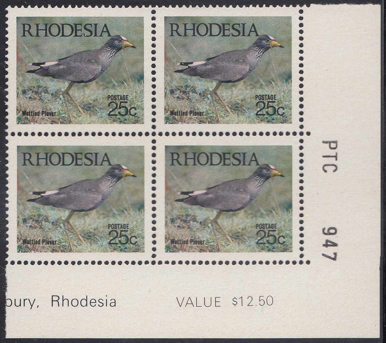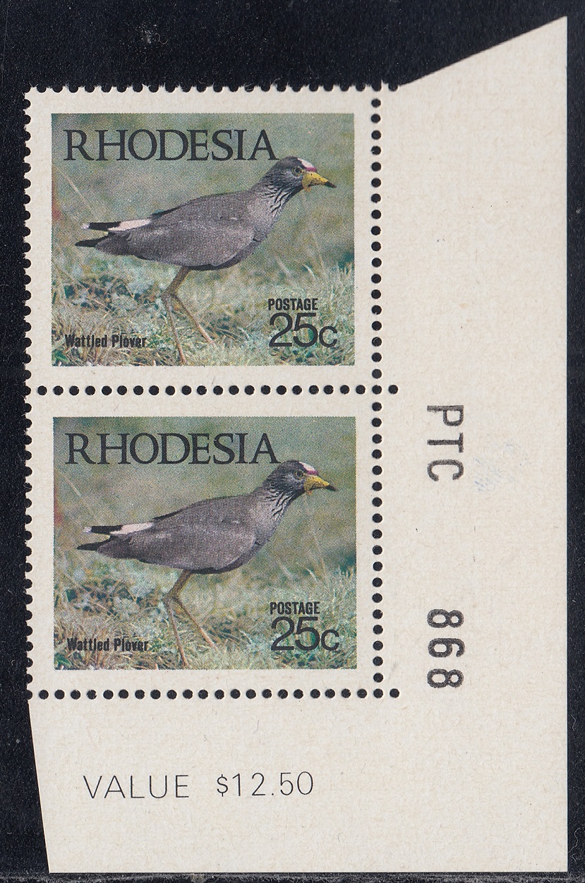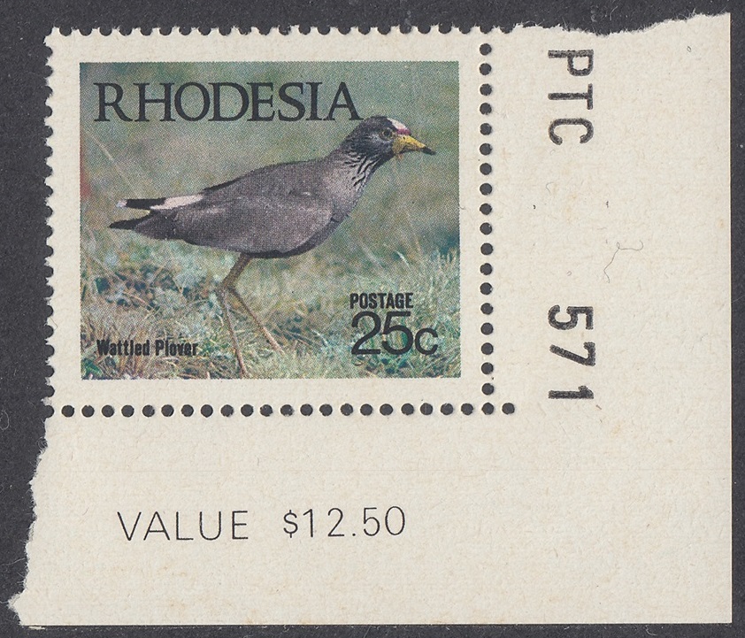 A Wattled plover is shown. These birds are found near water, particularly where marshy conditions exist, throughout Rhodesia but usually above 3,000 feet. The plaintive call is distinctive.