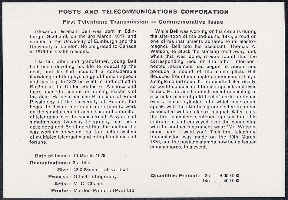 Covers with First Day of Issue cancels were available from Bulawayo, Gwelo and Salisbury. Covers include an insert.