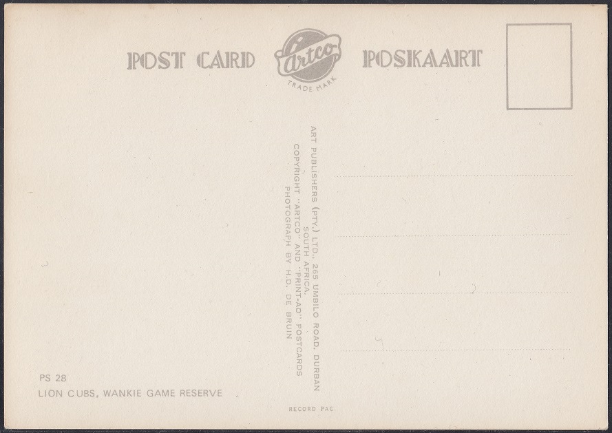 | PS 28 | Lion Cubs, Wankie Game Reserve. |