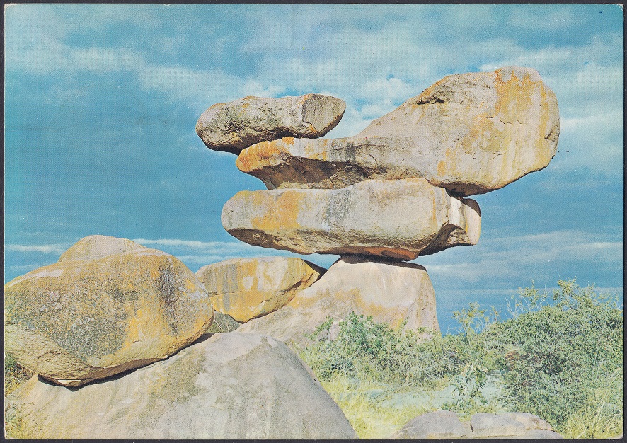 The Balancing Rocks are geomorphological features of igneous rocks found in many parts of Rhodesia. The formations are of natural occurrence in a perfectly balanced state without other support.