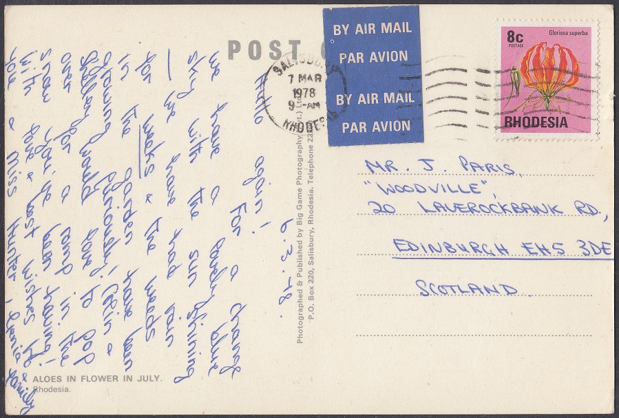 - Photographer: Big Game Photography (Pvt.) Ltd. P.O. Box 220, Salisbury, Rhodesia. Telephone 22200