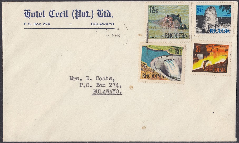 Rhodesia Rhodesia Philately: Hotel Cecil (Pvt.) Ltd. thedigitalphilatelist 11/11/1965 Hotel Cecil (Pvt.) Ltd. was located on the corner of Fife Street and Third Avenue, Bulawayo. Share this: Share on Facebook (Opens in new window) Facebook Share on X (Opens in new window) X Like this:Like Loading... Related
