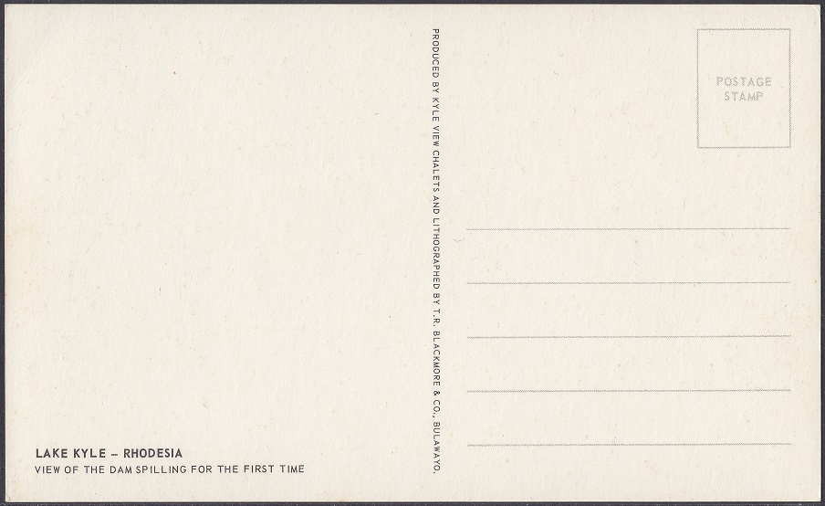 Lake Kyle lies in south eastern Rhodesia. It is thought to have been named after Kyle Farm which occupied most of the land required for the lake, which in turn was named after the Kyle district in Scotland from which the pioneer of the Lowveld, Tom Murray MacDougall came originally.