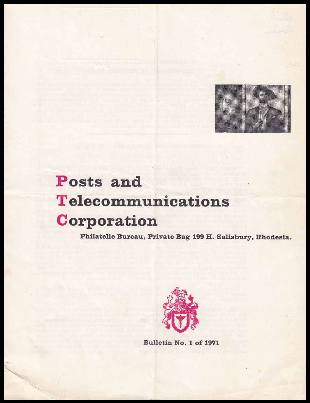 Rhodesia Rhodesia Philately: Posts and Telecommunications Corporation Bulletins (1970-1979) thedigitalphilatelist 01/01/1979 1970 On 1 July 1970, the Ministry of Posts became the Posts and Telecommunications Corporation (P.T.C.) 1971 1972 1973 1974 1975 1976 1977 1978 1979 Share this: Share on Facebook (Opens in new window) Facebook Share on X (Opens in new window) X Like this:Like Loading... Related