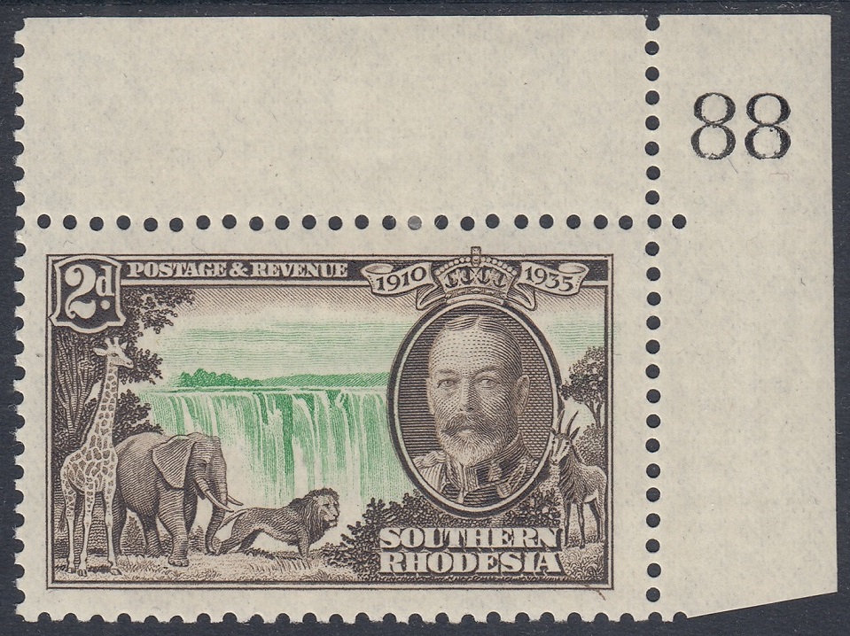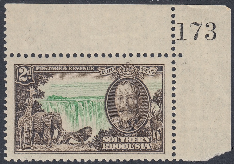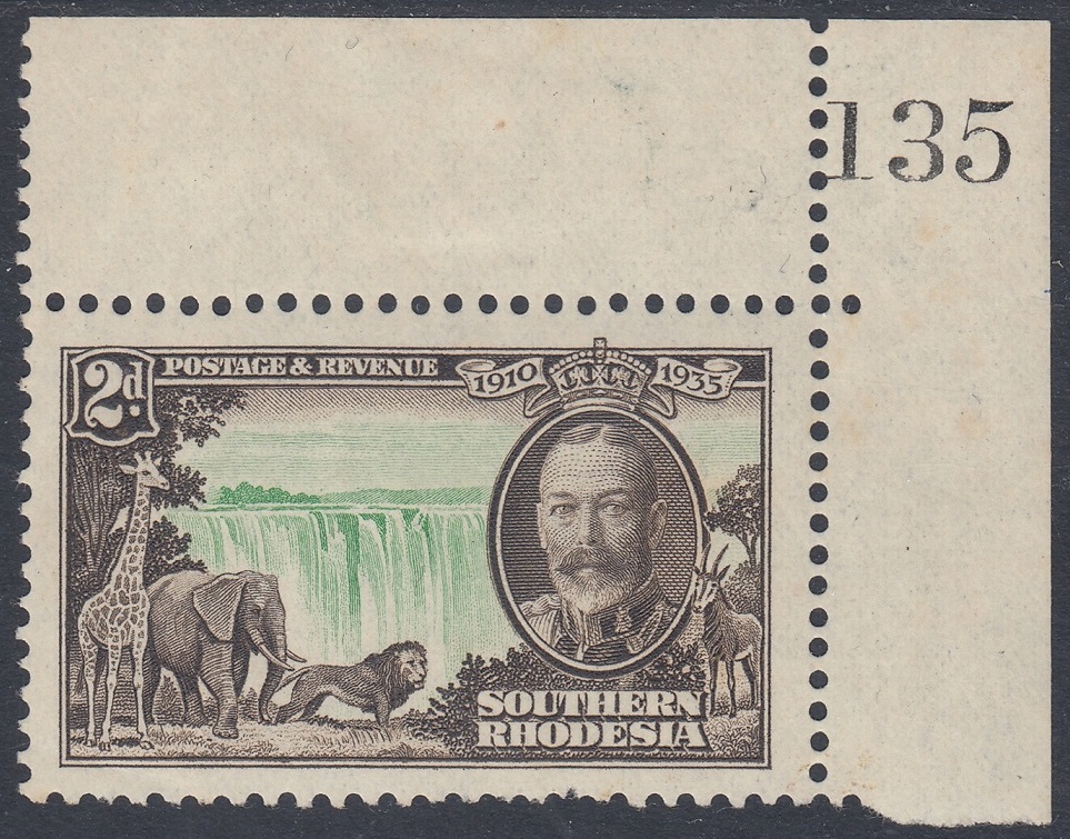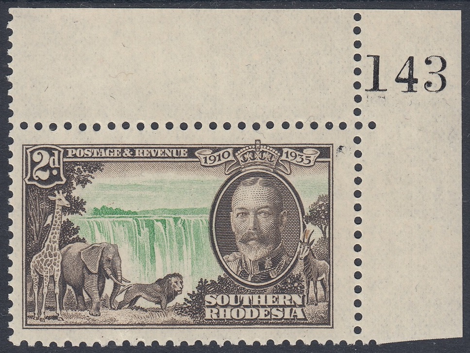 Southern Rhodesia Southern Rhodesia Philately: 1935 George V Silver Jubilee – 2d Victoria Falls thedigitalphilatelist 06/05/1935 Details Designer: Printer: Waterlow & Sons Ltd, London Wall, London, E.C. Process: Recess Paper: Watermark: None Perf: 11 x 12 (comb) Plates: Sheet: Quantity: Sheet Numbers Share this: Share on Facebook (Opens in new window) Facebook Share on X (Opens in new window) X Like this:Like Loading... Related